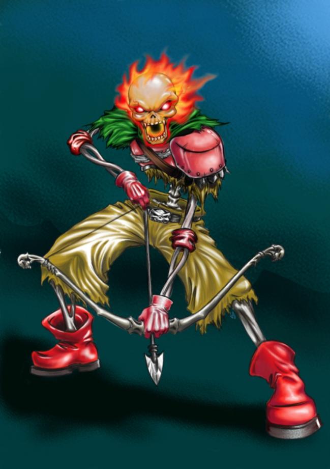 It's hard to say whether the blur around the Bone Fletcher are from his flaming heart or his speed with the quiver.